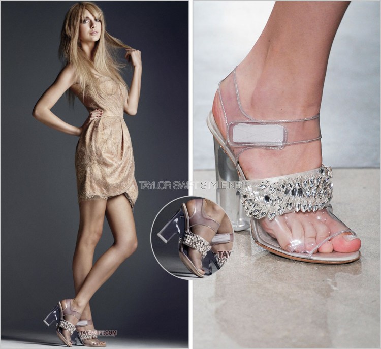 To complete her look for Elle, Taylor wore a pair of these perspex crystal-detail sandals from the Prada Spring 2010 runway.