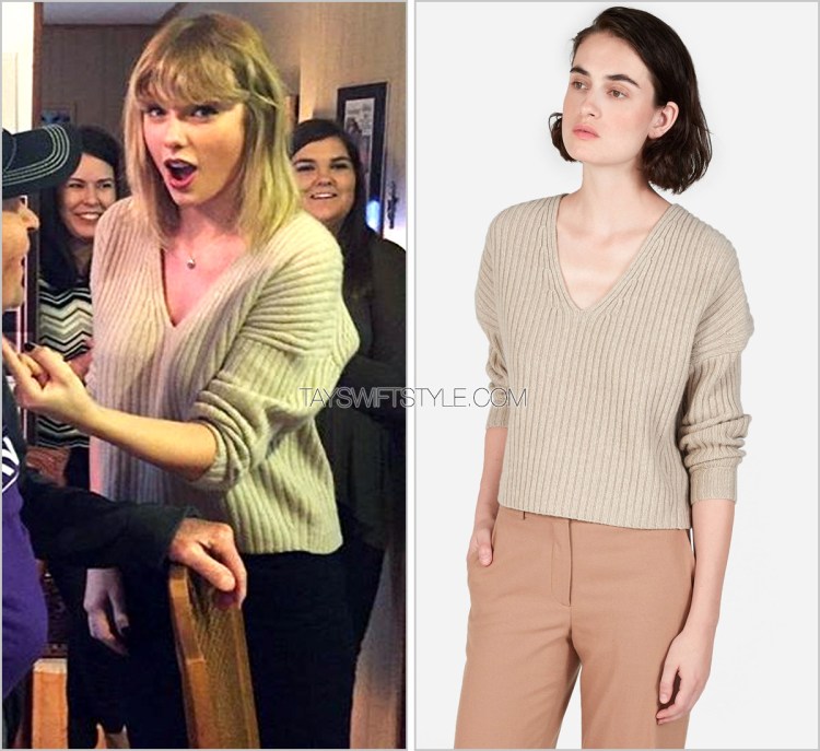What a blast from the past. This sweater was first seen way back in 2016 and it appears to still be kicking around Taylor’s closet. She wore it in an interview with Zane Lowe that will be premiering in full on Tuesday.