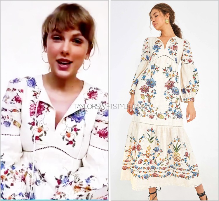 Taylor accompanied her beautiful message today regarding the LGBTQ (emphasis on the T) community with a beautiful summery dress wearing a new-to-her brand. I love the mix of embroidered and open eyelet details at the bust and sleeves. So pretty and seasonal!