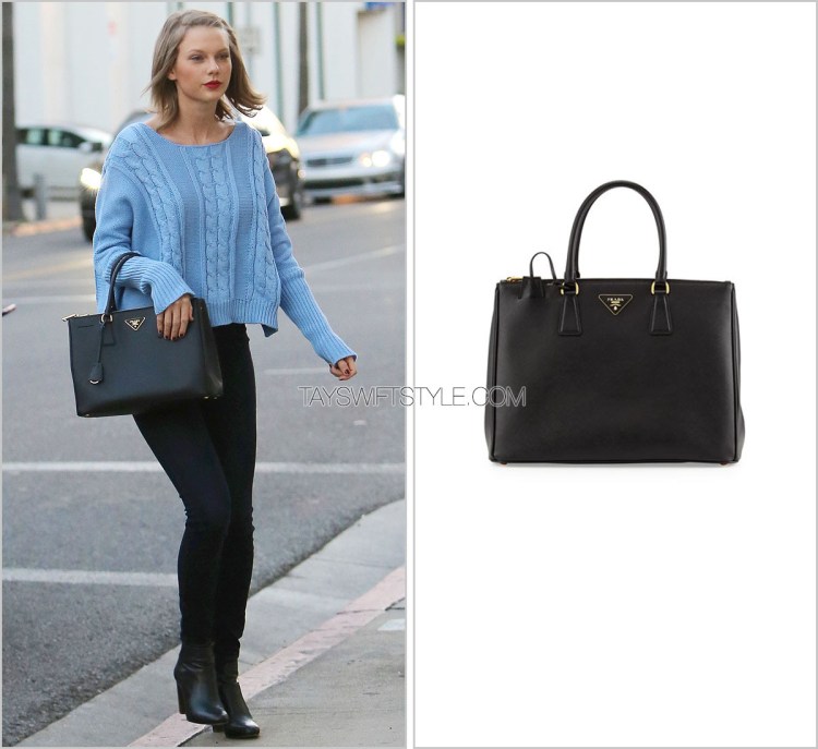 Taylor was photographed out in Beverly Hills and we finally got to see her out of activewear! She looked so pretty in this pale blue cable knit sweater by Faithfull.