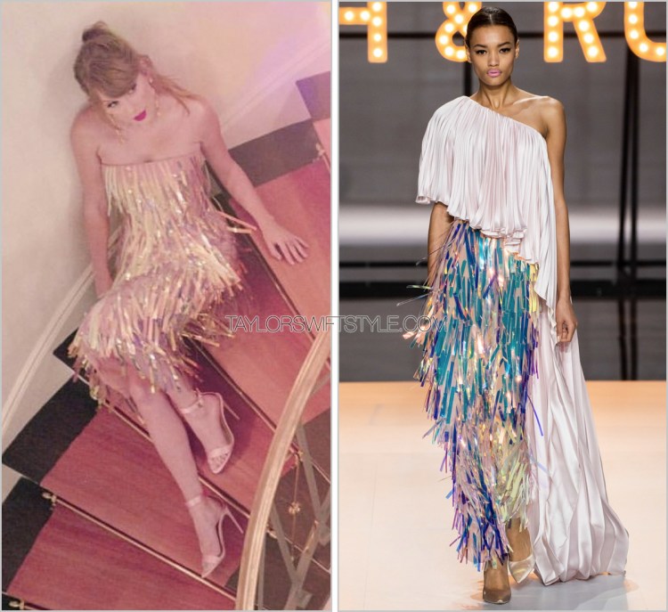 Fun story about the runway photo on the right. It’s not the exact gown Taylor is wearing, though it is from the same brand. Which I did happen to include in both my BAFTAs and Grammys posts.