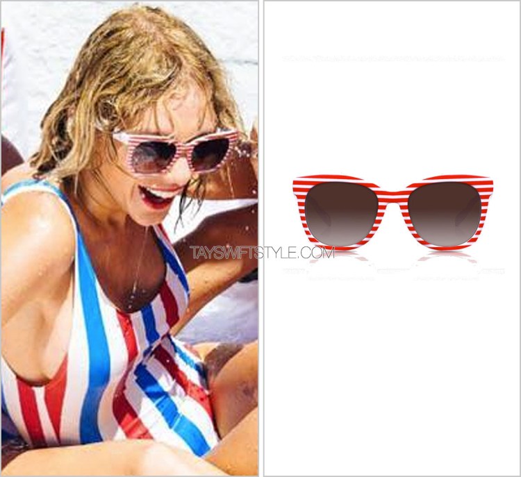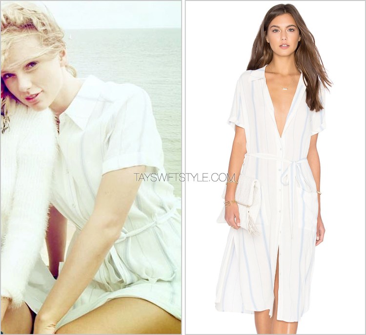 This beautiful dress combined with Taylor’s minimal makeup and the photo overall definitely had me loving this outfit choice the most out of Taylor’s Fourth of July fashion. You can still pick up this dress in red for pre-order here.