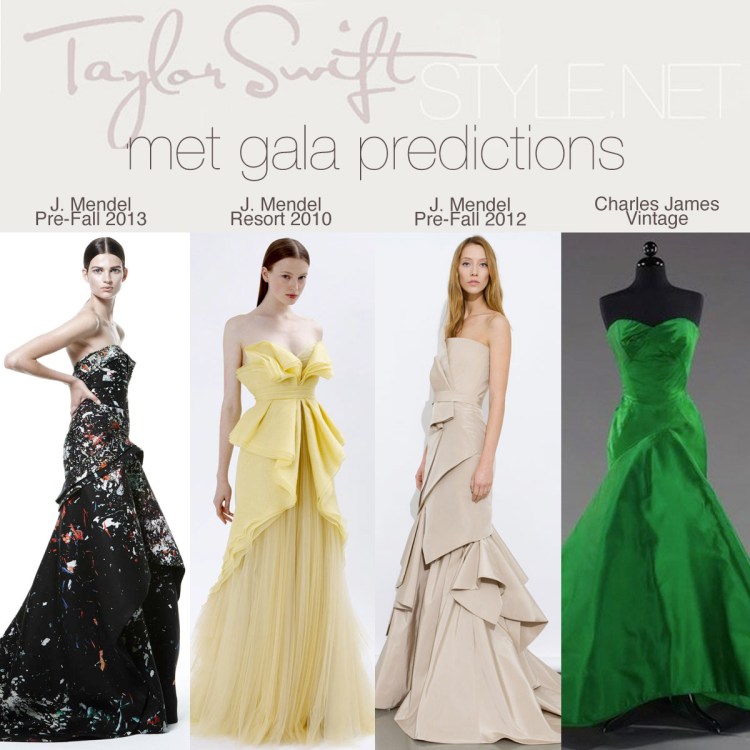 What do you think TSS-ers? Which of my choices do you prefer? Or do you think Taylor will wear a custom gown?
