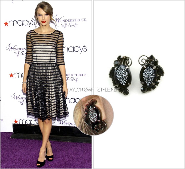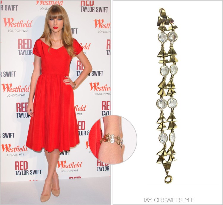 A flashback to Taylor’s 1989 shoot from when her fifth album was announced. Here, she wears a chunky/oversized House of Lavande ring. Its pearly blue tones are a subtle nod to the water behind her and blue tones of her striped shorts.
