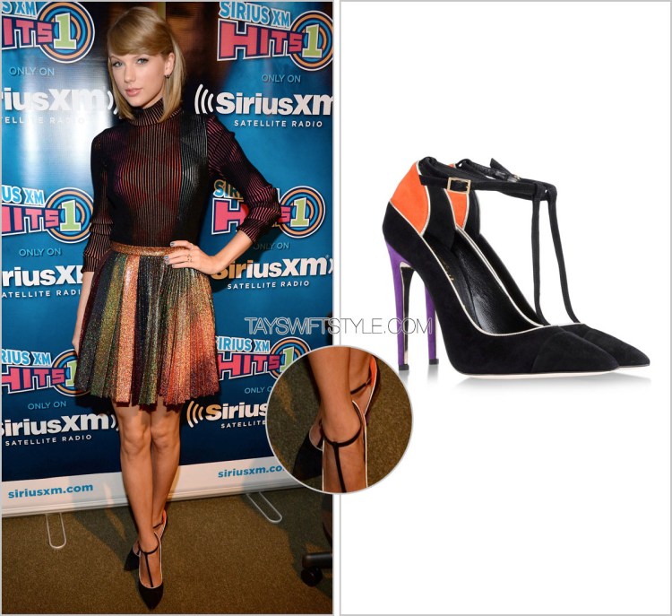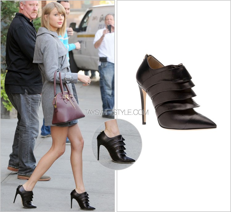 Black on black, a personal favourite of mine. Taylor lets her simple sleeveless LBD let her killer Jerome C. Rousseau booties do all the talking for her during her interview with Barbara Walters.