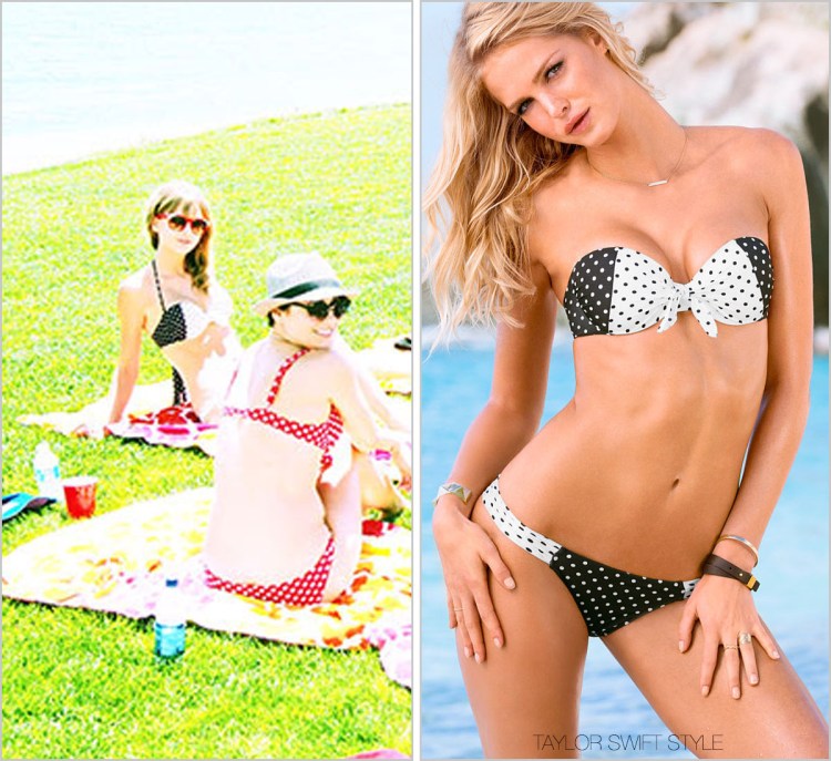 If you love Taylor’s swim style, then you’re in luck! One of the bikini tops she wore while celebrating Independence Day is on clearance at VS.
