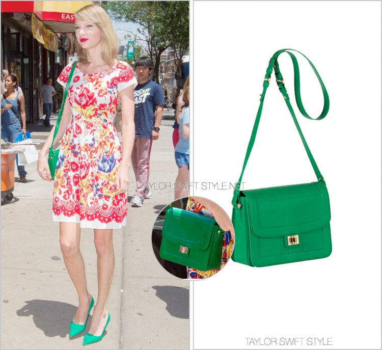 To add even more colour to her outfit, Taylor selected matching bright green accessories which included this Elie Saab bag.