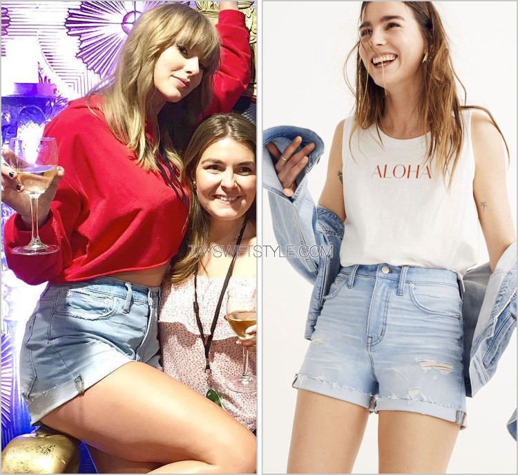Anyone else sensing a denim trend on Taylor as of late? She’s been having fun with her Rep Room and rehearsal looks, swapping out different pairs of cute denim pieces in various washes and trend points. Up today? A sunny embroidered pair that, once again, I could totally see restyled to have a San Francisco in the 70s vibe.
