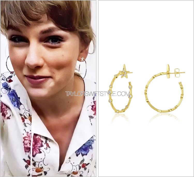 I’m loving Taylor’s latest obsession with hoop earrings as they’re a bold add-on to her typical more dainty or completely lacking candid jewelry style.