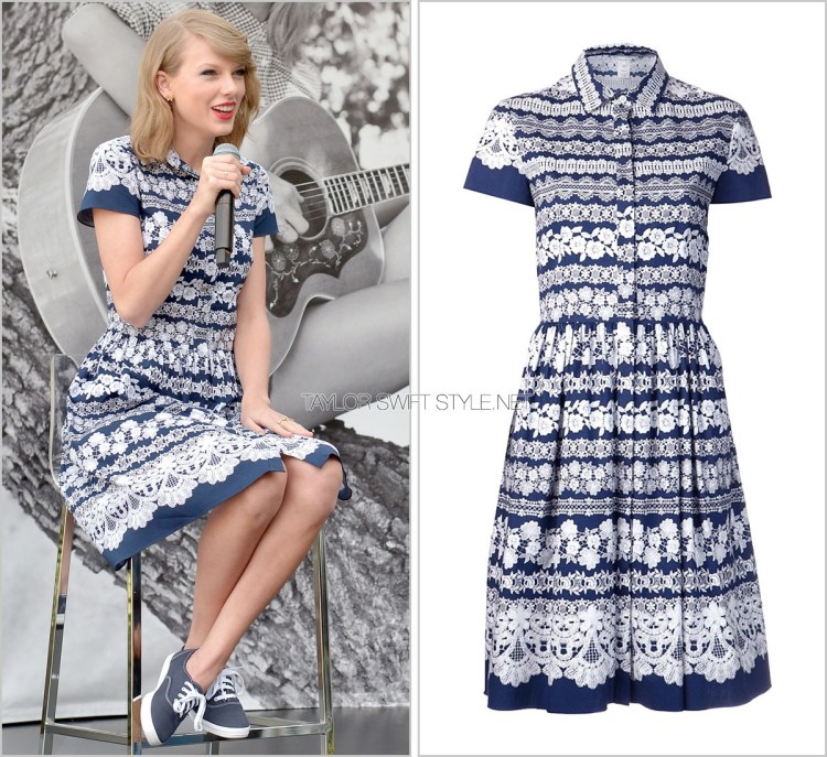 Taylor of course finished her look off with a pair of navy Keds to perfectly match her floral dress.