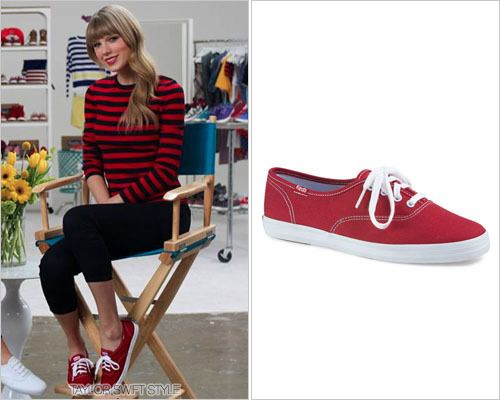 The only thing that surprises me about Tay wearing these classic red Keds champion sneakers is that they’re not her own limited edition pair. Which we’ve actually yet to see her wear.
