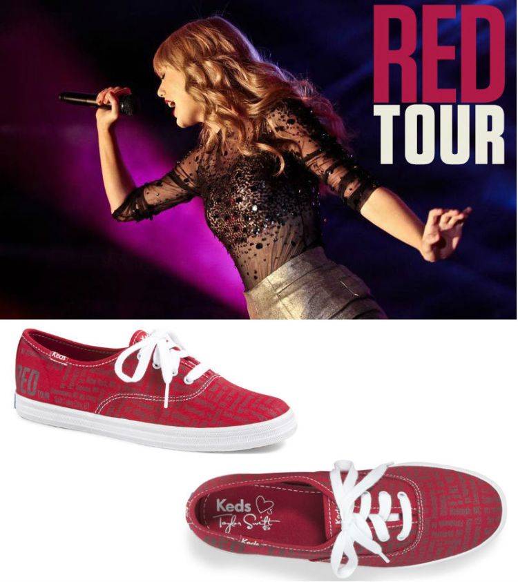 In continuing with her three-year endorsement deal with the casual sneaker brand, Taylor has released these official RED Tour Keds in honour of the North American leg of her world tour kicking off this week (Wednesday!).