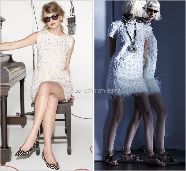 In addition to wearing them with her Twenty8Twelve LBD, an outtake from the magazine revealed Taylor wearing these curved-heel boots by Lanvin with another outfit. I sadly don’t know any of the other pieces from this set up.