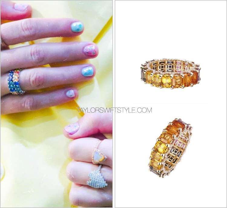 Issuing a correction from previous. Taylor’s rainbow stacked rings are Luisa Alexander.