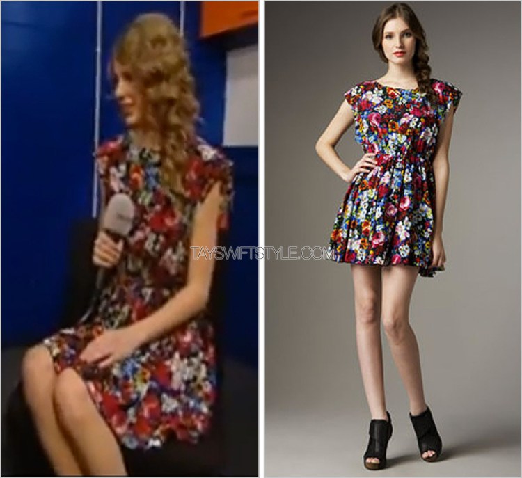 Despite the blurriness, Taylor looked lovely in this floral elastic-waist A+O dress.