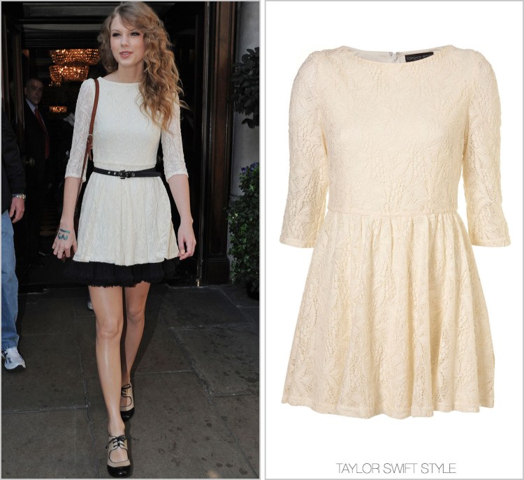 Taylor got creative with this outfit and added a black tutu underneath to extend the short hemline of this dress on her long legs.