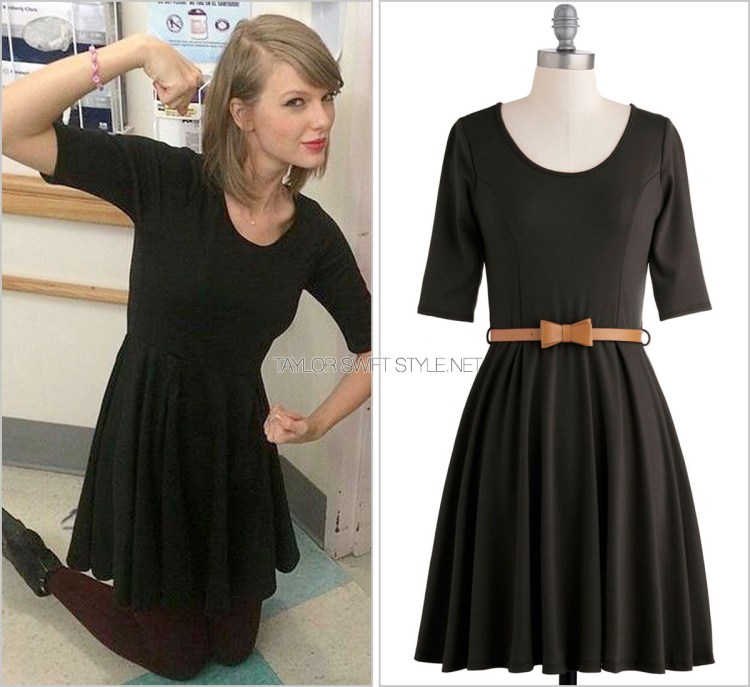 Taylor wore this super cute spin on an LBD while attending Zach Braff’s Broadway show in NYC a few months ago.
