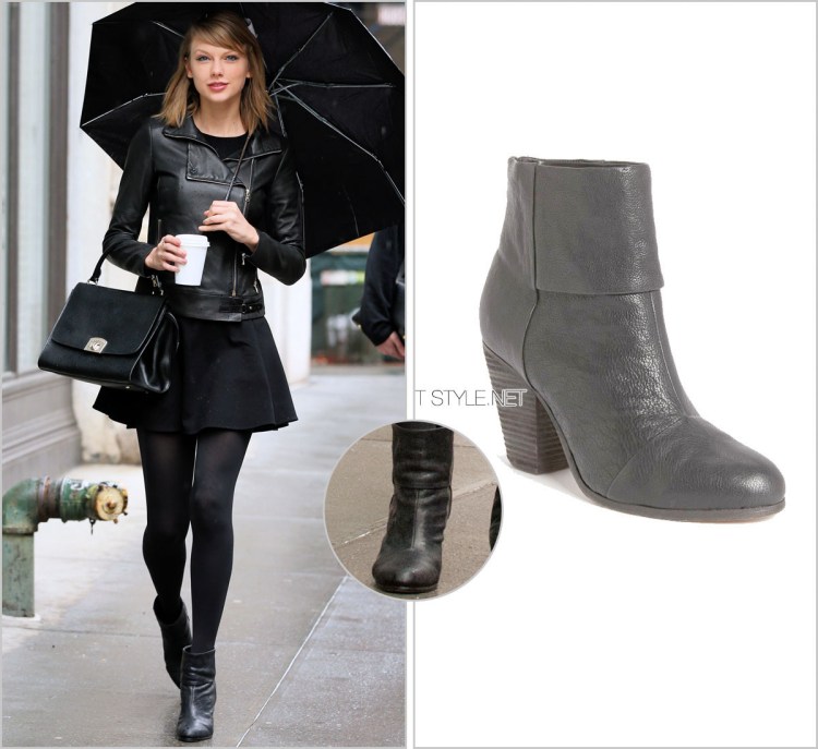 Now this is more like it! A super chic mix of colours and textures, Taylor left her NYC apartment this morning with Meredith on her arm and these suede ankle booties by Isabel Marant on her feet.