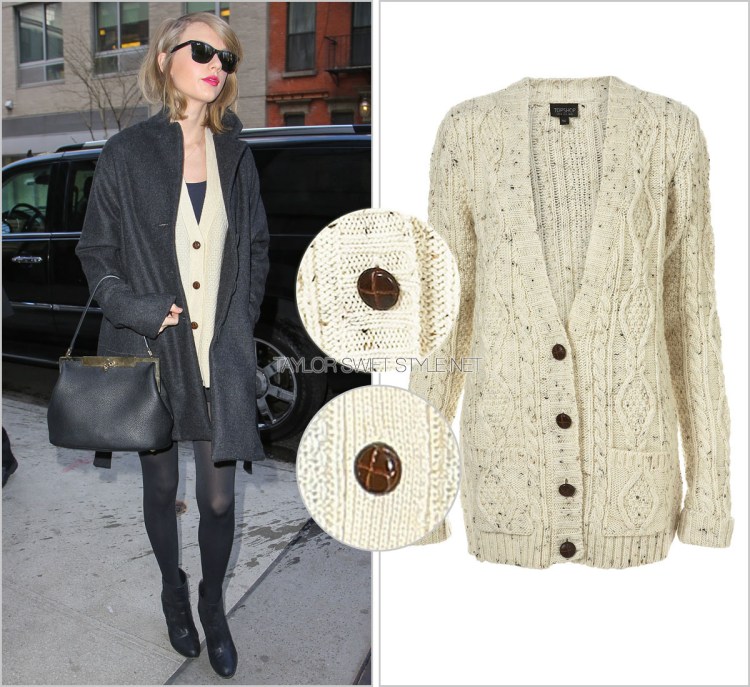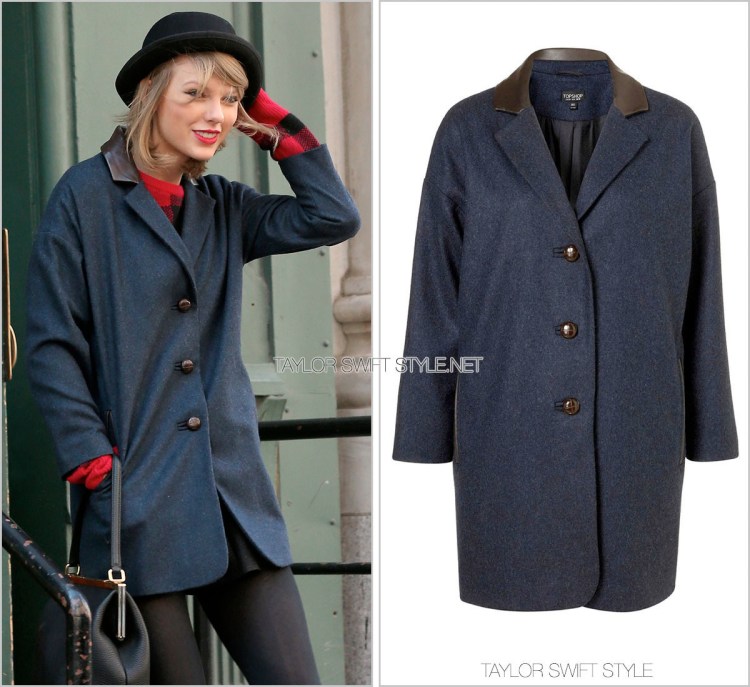 Is anyone else completely coveting Taylor’s cool city girl New York style? She left her apartment today bundled up in this oversized coat by TopShop. She’s owned this particular jacket since December 2012.