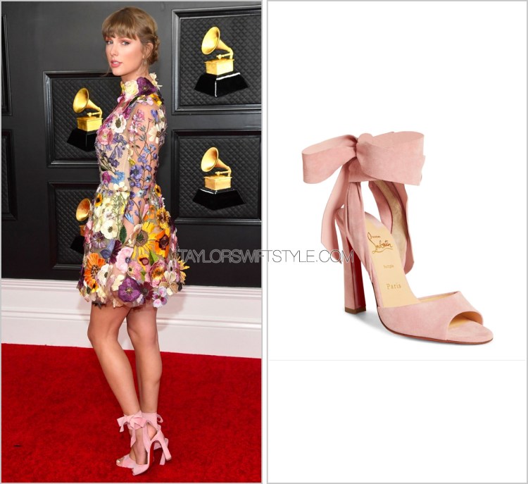 I’ve long said that Taylor should take advantage of opportunities to up her shoe game from the more classic/expected silver or gold metallic sandals she usually favours on red carpets so I was absolutely delighted by this romantic and girly choice in shoe that complements her dress perfectly.