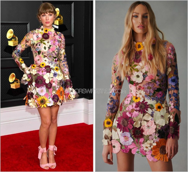 I could easily see this dress being worn to the AMAs (where Taylor has a stronger history of wearing minis), so while I’m still mentally attached to the concept of a long, elegant and impactful gown, this short and sweet mini as-is is very beautiful and also notably is an appropriate choice given the timeshift of the awards ceremony to be situated more in the springtime.