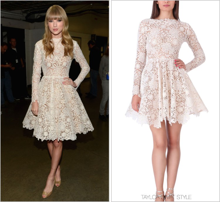 She looked absolutely lovely and ethereal in this flowing gown by MLH. Taylor actually wore a similar-looking gown by this same designer just a few months ago at the Kids Choice Awards in March.