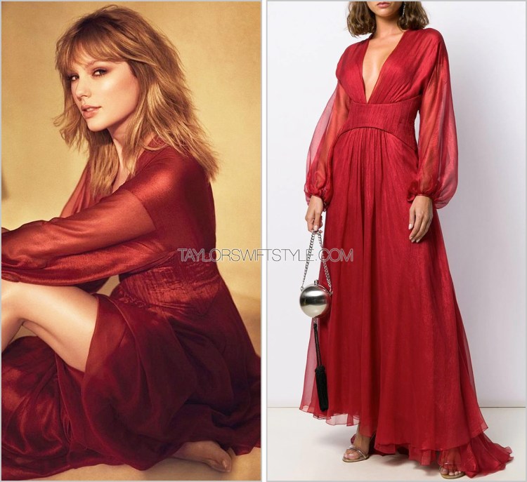 Oh Taylor looks so beautiful in this flowing gown by Maria Lucia Hohan. I appreciate the wispy wind-blown hair and glowing makeup.