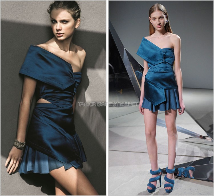 The beautiful plumage on this Giles Fall 2010 dress wasn’t entirely done justice by this back shot that ran in Taylor’s July spread. But doesn’t Taylor look like the most stunning fashion ballerina?