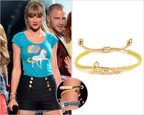 Taylor finishes up her last show of four in the Texas area tonight at a soldout show in Cowboys Stadium. She contrasted the sweetness of this sunshine-yellow dress with her trademark red lip.