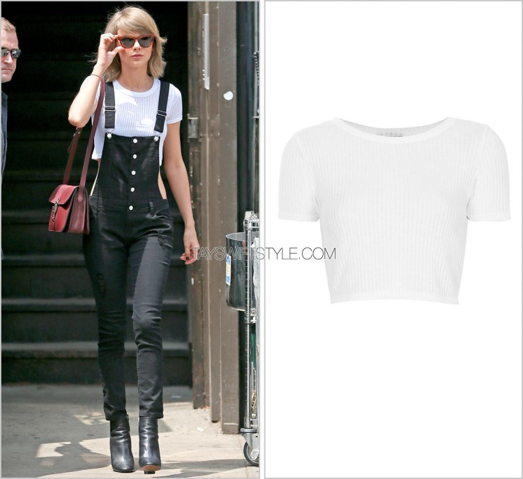 The clean white crop top she previously wore it with better suit the city vibe.