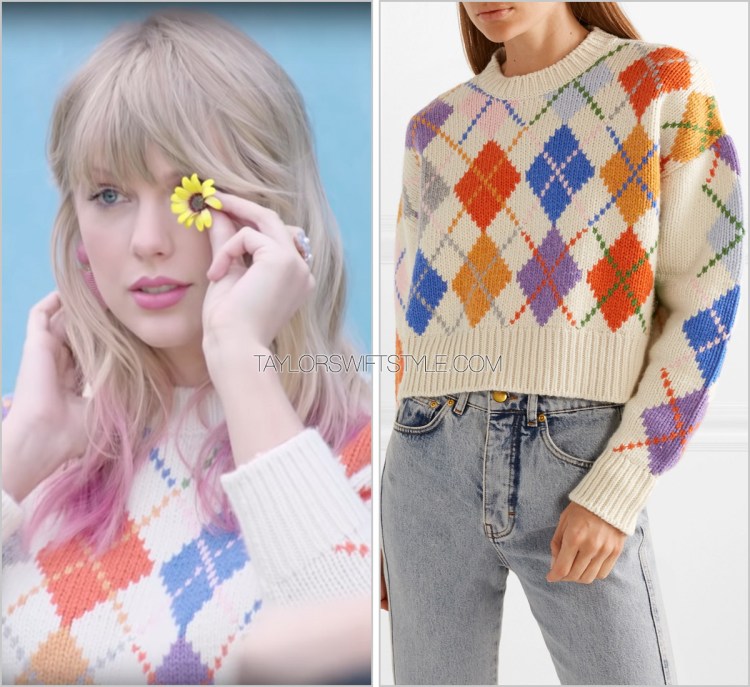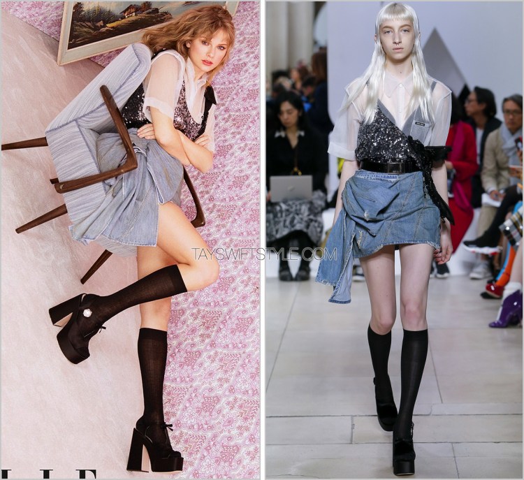 Taylor’s love of Gant’s outerwear continues – this time in an oversized shearling jacket that’s a spin on a classic aviator style and feels very cozy wintery and stands as a nice proportional contrast to her (repeat) Miu Miu skirt we previously saw her wear while on a date with Travis in Argentina when one of her shows was rained out and postponed. Taylor also owns this particular mini in another plaid check print.