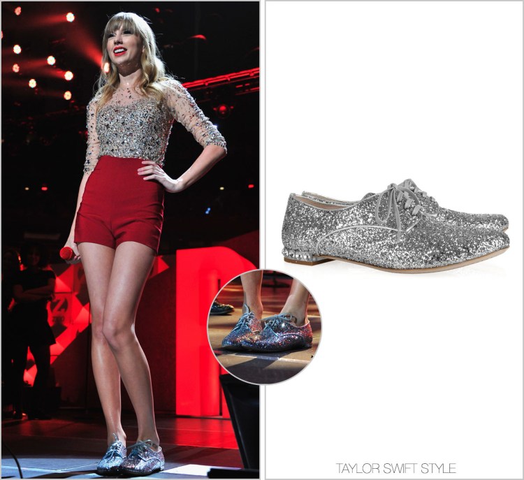 Taylor wore the glitter version of these crystal-heel oxfords at last year’s Z100 Jingle Ball.