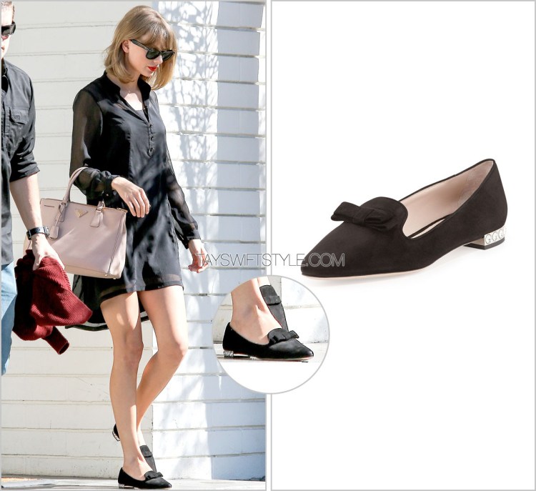 Taylor looked super cute in a variety of pastels as she stepped out in New York today. I personally find that little line of black around the neckline a little distracting from an otherwise summer hue-filled outfit.