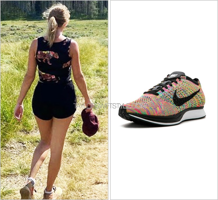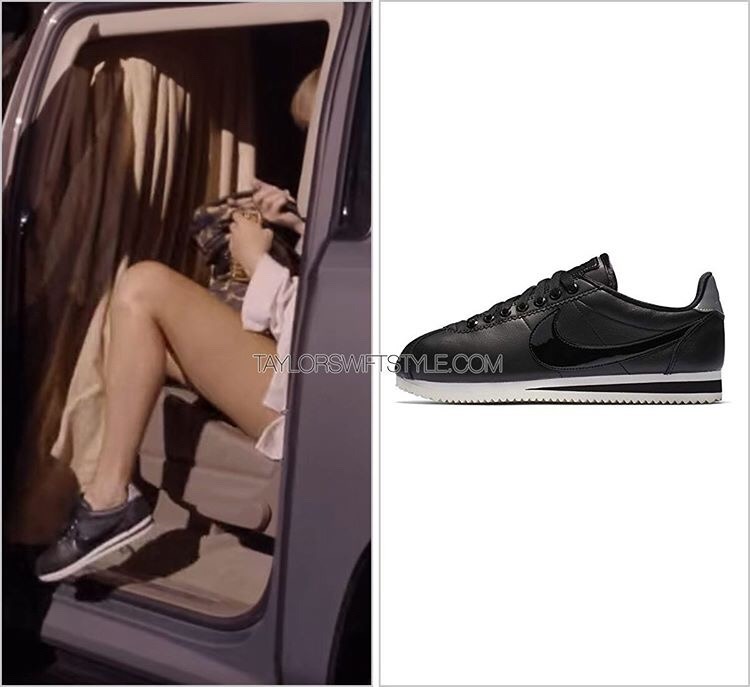 Based on the unique grey label and gum sole, it appears that Taylor’s Nike sneakers are a custom pair using the brand’s “By You” feature. Hers look to be all white with the only customization being a ‘Sport Red’ on the ‘Swoosh / Backtab’ feature.