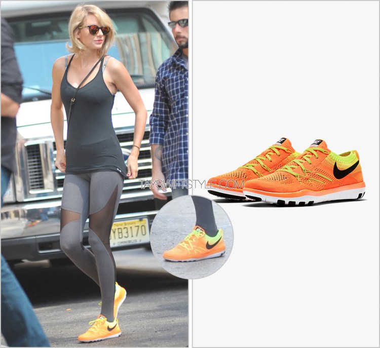 I love how Taylor continued to add a pop of colour to her outfit with these new aqua Nike sneakers she’s added to her Nike running collection.