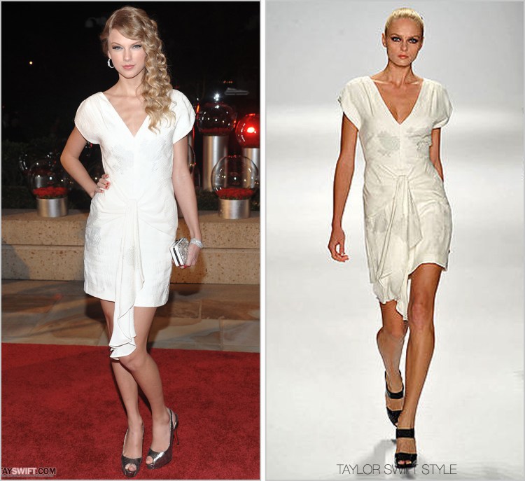 Taylor stepped out in a LWD for the 2009 BMI awards – accessorizing with glittery silver jewels and sweeping her ringlets off to the side. She added an extra hot factor by choosing a red mani.