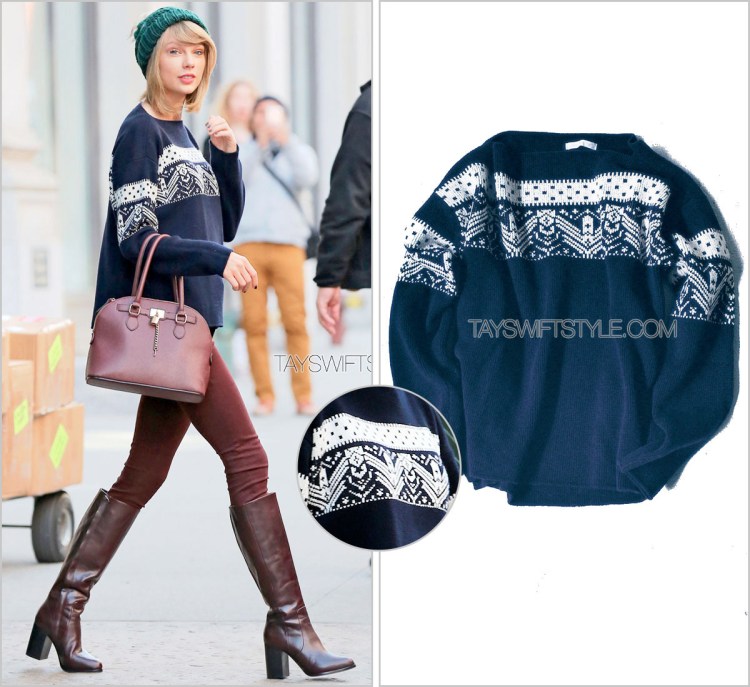 So. It casually only took me two months of feverish searching but I can finally at long last post this much sought-after fair isle sweater that Taylor wore in November on her way out of her apartment and while visiting a fan for Swiftmas.