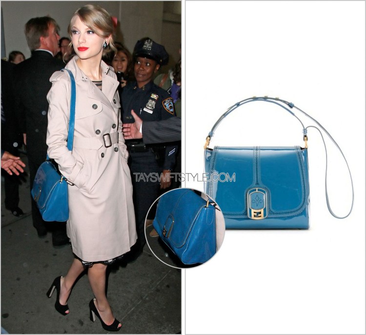 Although no longer available in Taylor’s classic Fendi patent blue, Taylor’s bag from 2011 is now available in a stone grey.