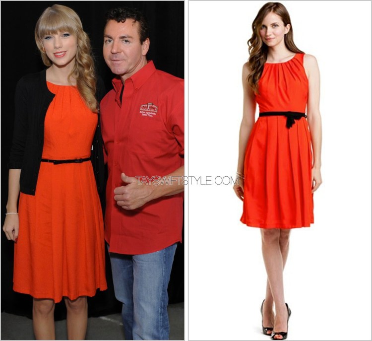 To promote her then-newly released album RED, Taylor hosted a mass radio interview event. She wore a ladylike cardigan over a prim and proper Eva Franco dress.