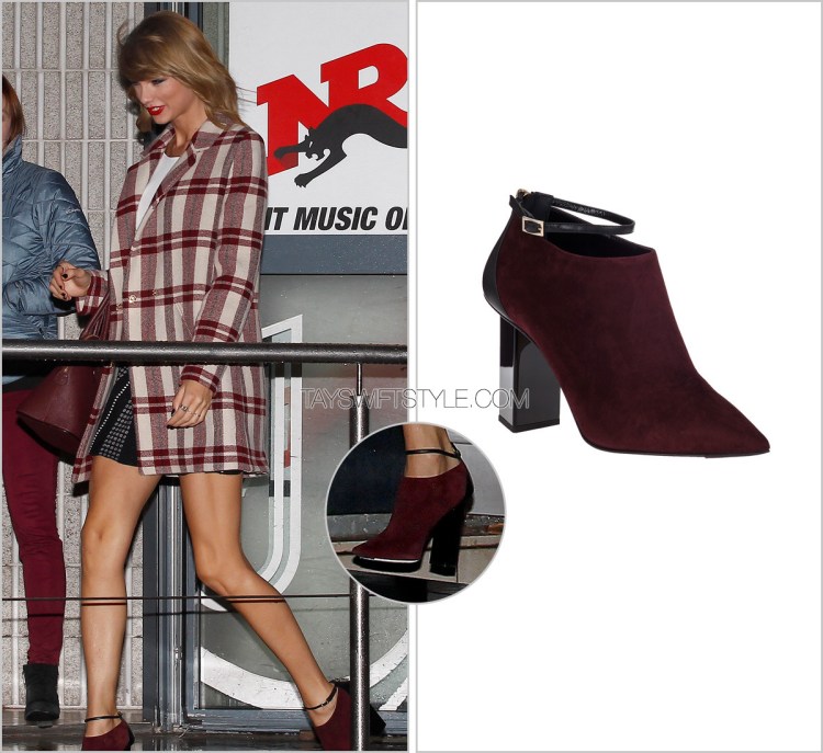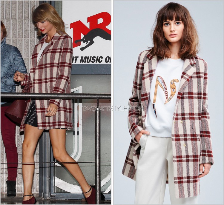 Taylor’s cute a-line skirt featuring an interesting piped trim is by BCBG Max Azria. She wore this skirt while leaving a radio interview in Paris during her promo tour over there.
