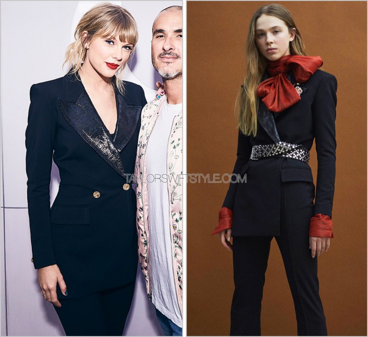 Taylor continues her blazer trend with yet another black tailored piece that has a little bit something extra going for it.