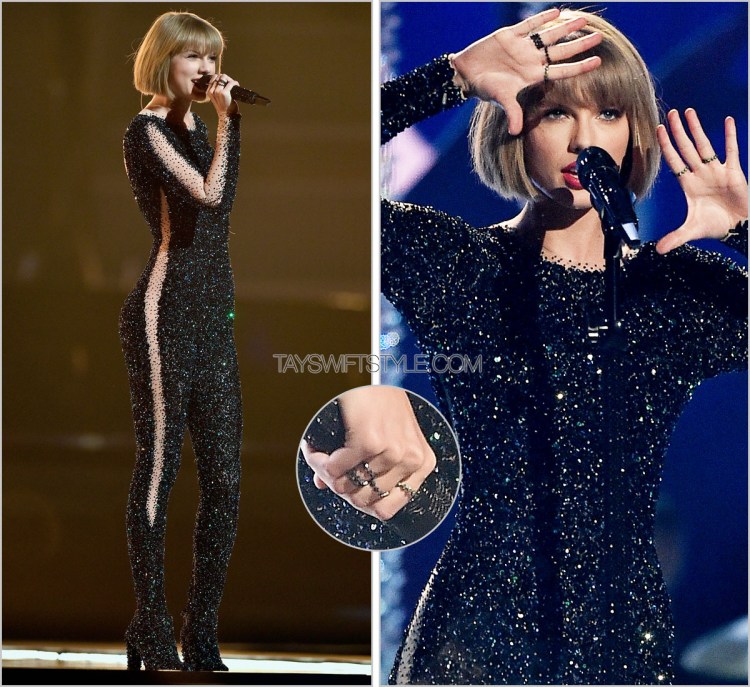 I actually think Taylor’s jewels and makeup are my favourite parts of her ensemble. Provided by her mainstay jewelers Ofira and Lorraine Schwartz, I cannot get enough of that multi-coloured choker and those beautiful purple stone earrings!