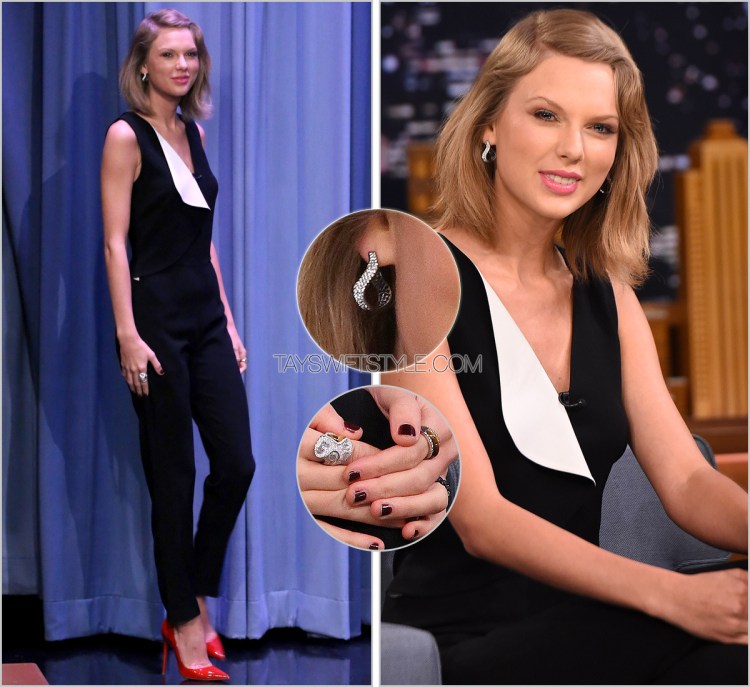 It’s no surprise that Lorraine Schartz and Ofira — sister brands — provided all of Taylor’s jewelry for this music video. Taylor usually goes to either or both of these jewelers for her red carpet accessories.