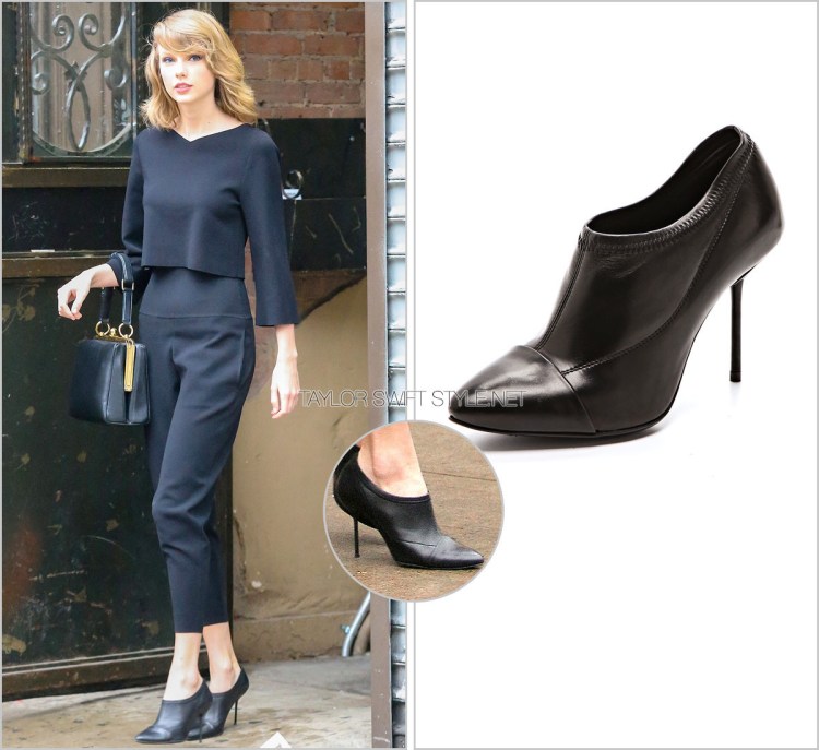 While a pair of black or even white shoes or a more retro pair of oxford heels wouldn’t have been remiss, the fact that Taylor added these turquoise pumps as a fun pop of colour to her outfit while also complementing the bag was a very nice touch.