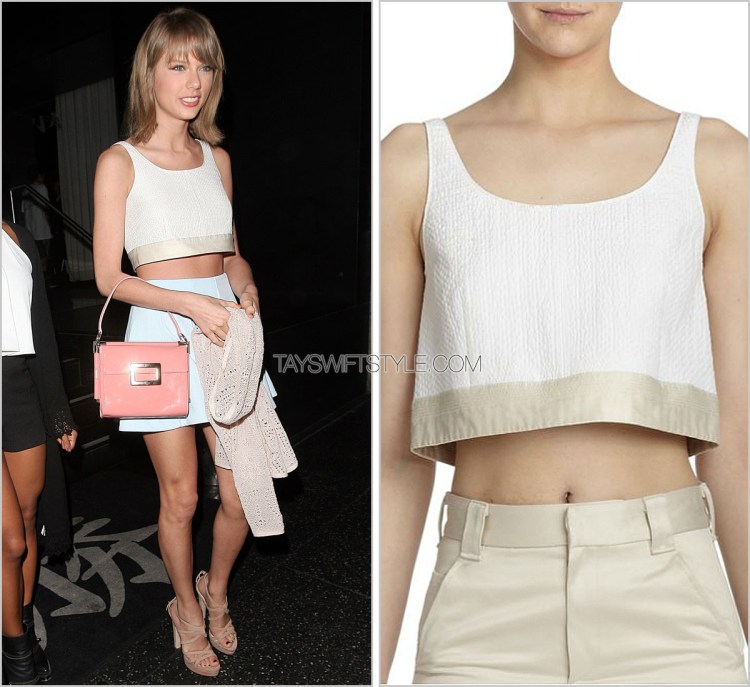 After a bit of a candid drought, Taylor resurfaced in L.A. today wearing an easy combination of striped top, black skirt and black lace up booties. The presence of that contrasting yellow bag is a little distracting.