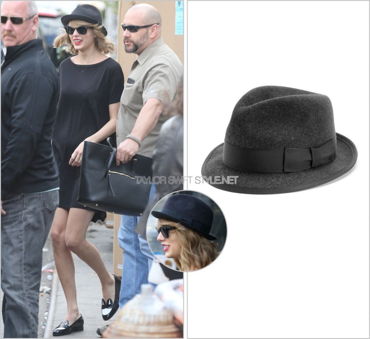 Taylor supported musical bestie Ed Sheeran by attending his NYC show at the Hammerstein Ballroom. She wore this textured, sheer-sleeve Rag & Bone LBD while rocking out to “Sing”.