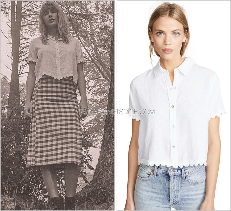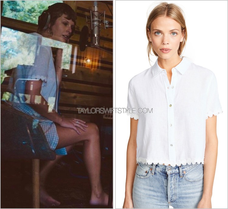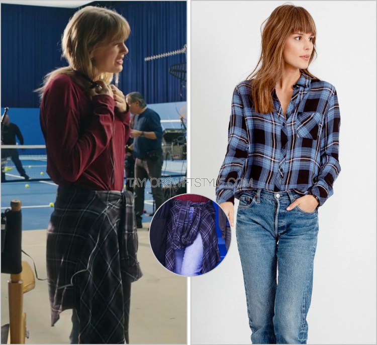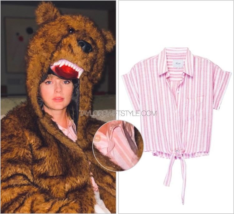 It’s difficult to tell but I’m reasonably confident given Taylor’s longstanding love for the brand and the pocket detail that Tay’s striped button up here is by Rails.