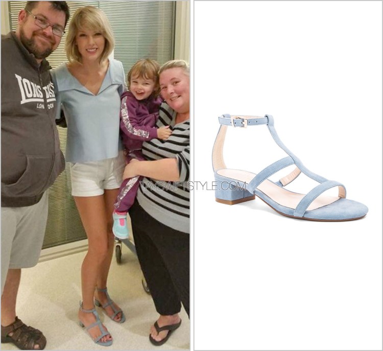 While I’m a huge fan of seeing blondes in orange and of course seeing Taylor in green, there’s something so classic and fresh about seeing someone with Taylor’s colouration (blonde and blue eyes) wearing white and a soft, cornflower blue like she’s wearing here.