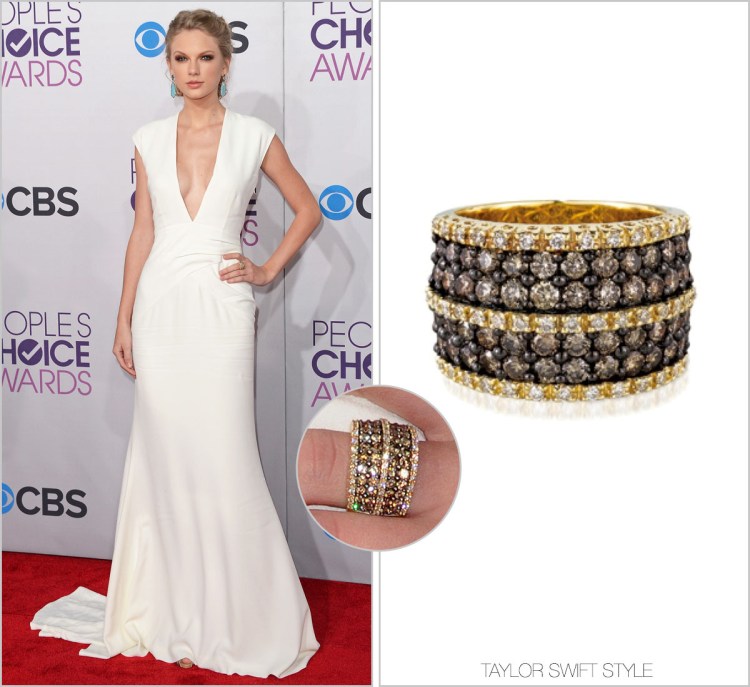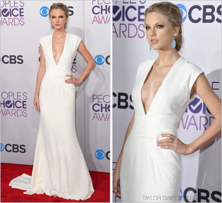 It’s always nice seeing Taylor wear some colour, even if it is in a silhouette she’s worn to death. Admittedly, switching to a jewel-tone in a silky fabric is a sweet change.