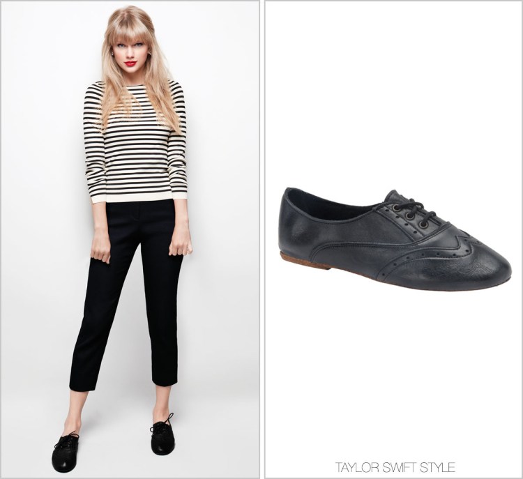 If it ain’t broke, don’t fix it. Taylor wears the brown versions of these shoes by Vintage Shoe Company in another photo set up from RED.